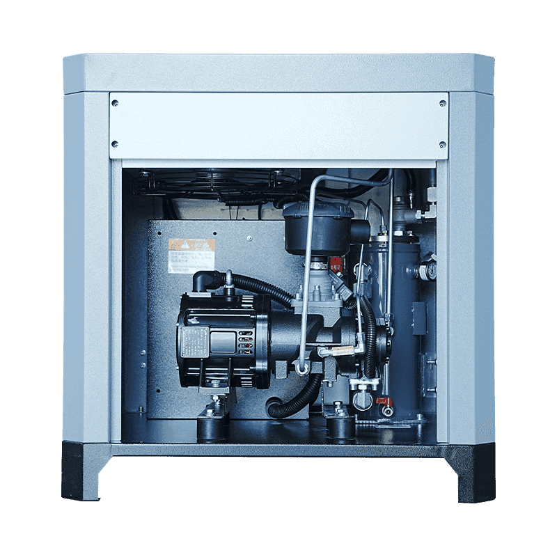 A kompresszor szíve az ikercsavaros léggyűrűben található. A kompressziós kamrában egy apa és egy anya rotor forog ellentétes irányba. Amikor a rotorok elkezdenek hálózni, a bemeneti nyílásból kiszívott levegő beszorul a rotor szárnyai és a ház közé. Ez a beszorult levegő mennyisége fokozatosan csökken, ahogy a rotorok tovább forognak, ami folyamatos összenyomáshoz vezet. A mikroolaj befecskendezésnek köszönhetően a tömörítés hatékonysága a szivárgás csökkentésével és a hőstabilitás javításával javul. A Zhejiang Haidebao Industrial Technology Co., Ltd. nagy pontosságú megmunkálást alkalmaz a rotorprofilokhoz, biztosítva a zökkenőmentes összekapcsolódást és csökkentve a működés közbeni mechanikai veszteségeket. Az egyfokozatú konfiguráció egy folyamatos folyamatban közvetlenül a célnyomásra sűríti a levegőt, ésszerűsíti a belső energiaáramlást és támogatja a hosszú távú ipari alkalmazási forgatókönyveket.